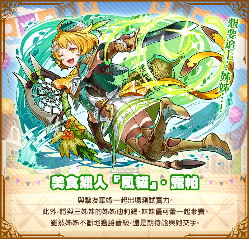 期間登入且滿Lv4以上可獲得見習美食獵人‧露帕x1!