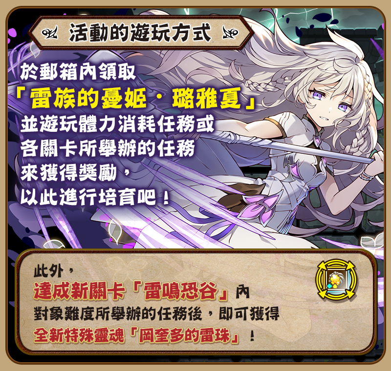 期間登入& Lv4 以上 可領取「雷族的憂姬・璐雅夏」