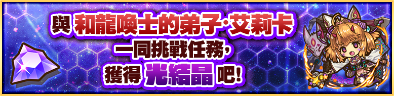 活動期間內登入& Lv4 以上的玩家 可領取 11連轉蛋券×1、帝國守護神・雅典娜×1、和龍喚士的弟子・艾莉卡×1、七星避邪姬・琦鈴×1、焰刻時龍契士・米爾×1、華麗的天才・珍×1、踢踢公主&惡魔使者×1、始源之龍喚士・索妮雅=古藍×1