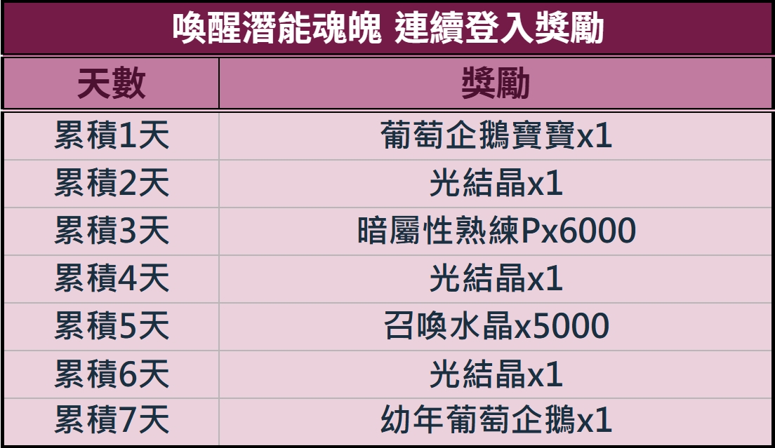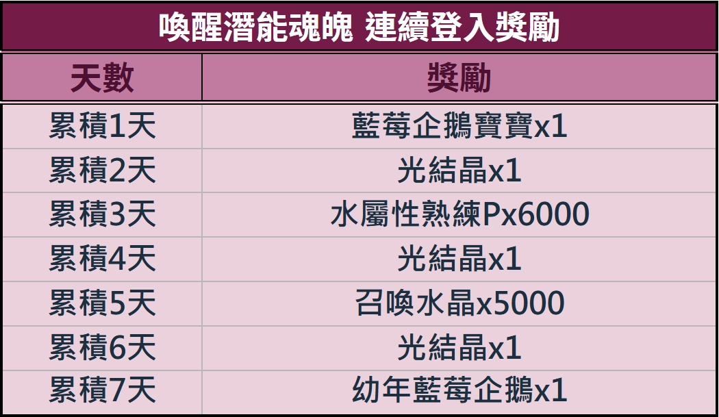 期間登入& Lv4 以上 可領取登入送獎勵。