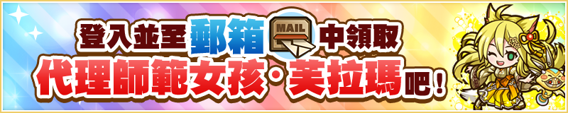 期間登入& Lv4 以上 可領取「代理師範女孩・芙拉瑪」、「粉紅公主花・梅蘿妮亞&梅林」「米莉安・與・緋紅九尾」、「地區嚮導・提塞拉」