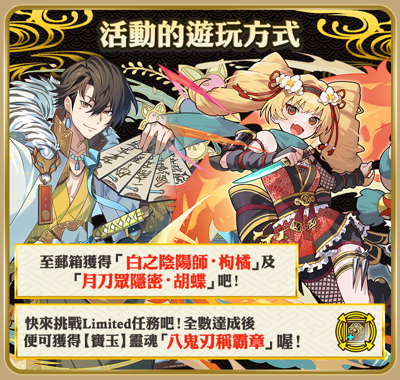 登入& Lv4 以上 可領取「白之陰陽師・枸橘x1」