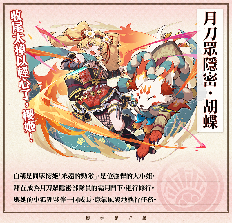 期間登入& Lv4 以上 可領取「月刀眾隱密・胡蝶x1」